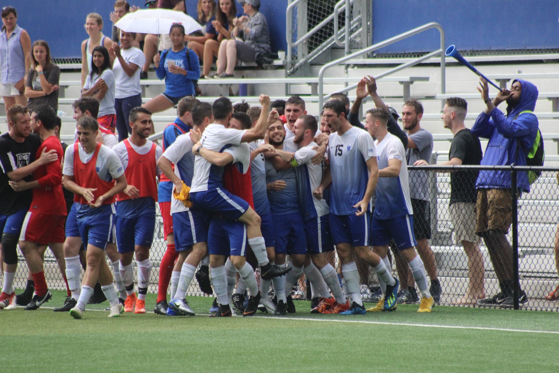 The UNG men's soccer team opened up Peach Belt tournament play with a convincing 4-0 win over USC Aiken on Oct. 31 in Dahlonega, while also making some history.